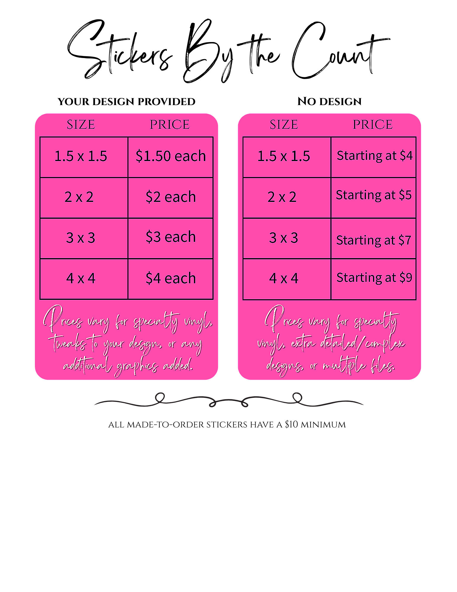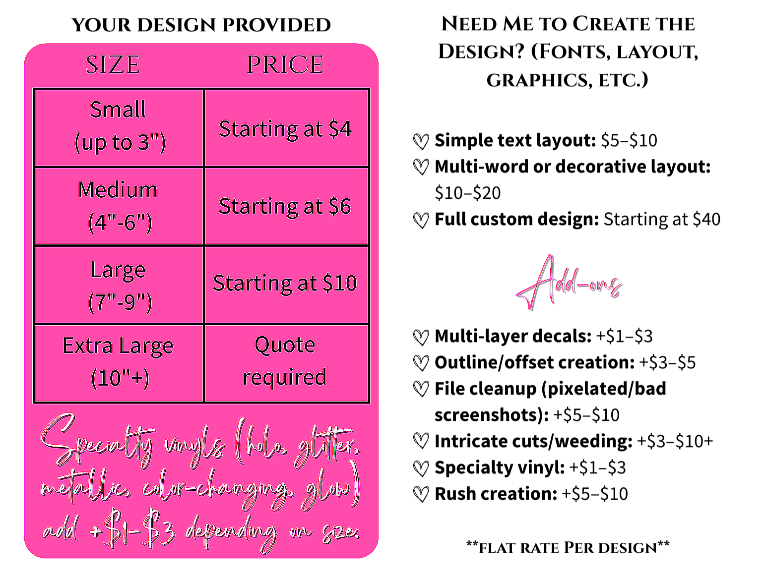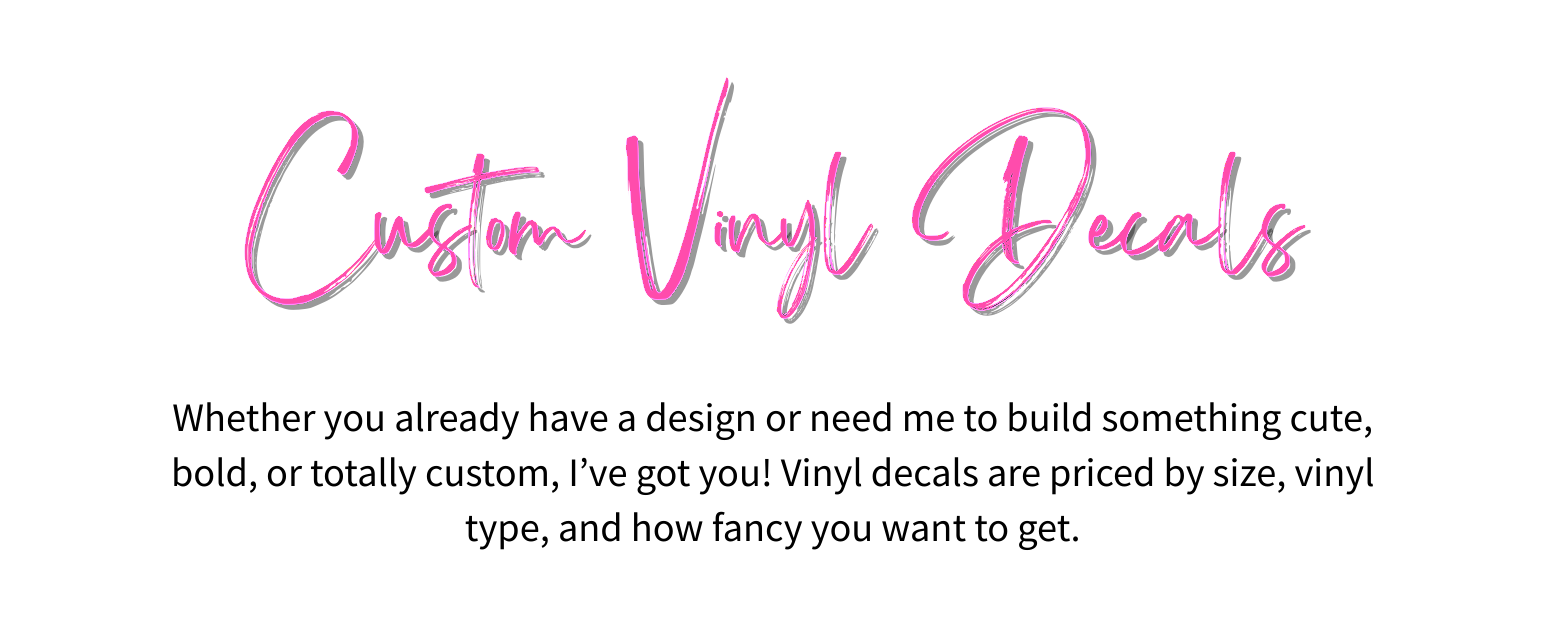 Looking for something one-of-a-kind? I make custom die-cut stickers and vinyl decals just for you. Whether it’s your logo file, artwork, or an idea we dream up together — every sticker is handmade, made with premium materials, and always packed with a little magic and a lot of love ♡